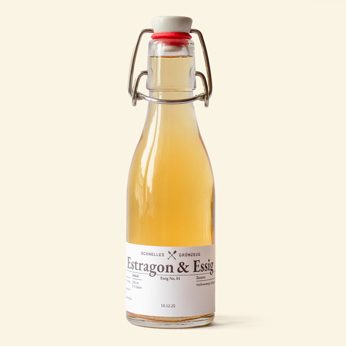 Dieser Estragon Essig hat den Suchtfaktor! Für (Kartoffel)Salate, Dressings und Süßspeisen. Fügen Sie einem Apfelkompott davon mal ein paar Spritzer zu…